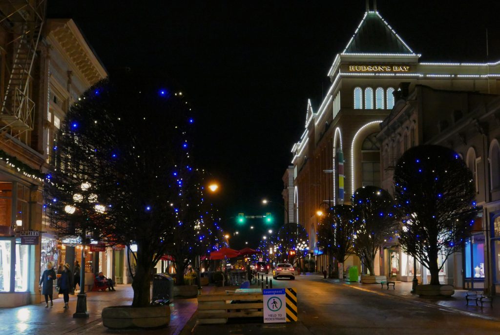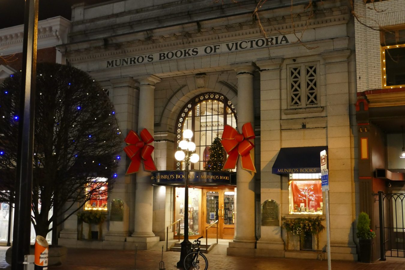 There are a few photos of Munro’s Books and Russell Books but there are none from Bolen Books. This is not meant as a slight towards them, but I went by twice and they did not have Christmas lights on or obvious decorations out this year.