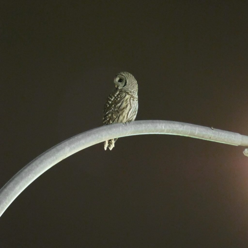 Here’s the photo again if you didn’t see it on social media last Halloween. I had been in Victoria for a book signing at Indigo. I saw this owl across the street and took photos.