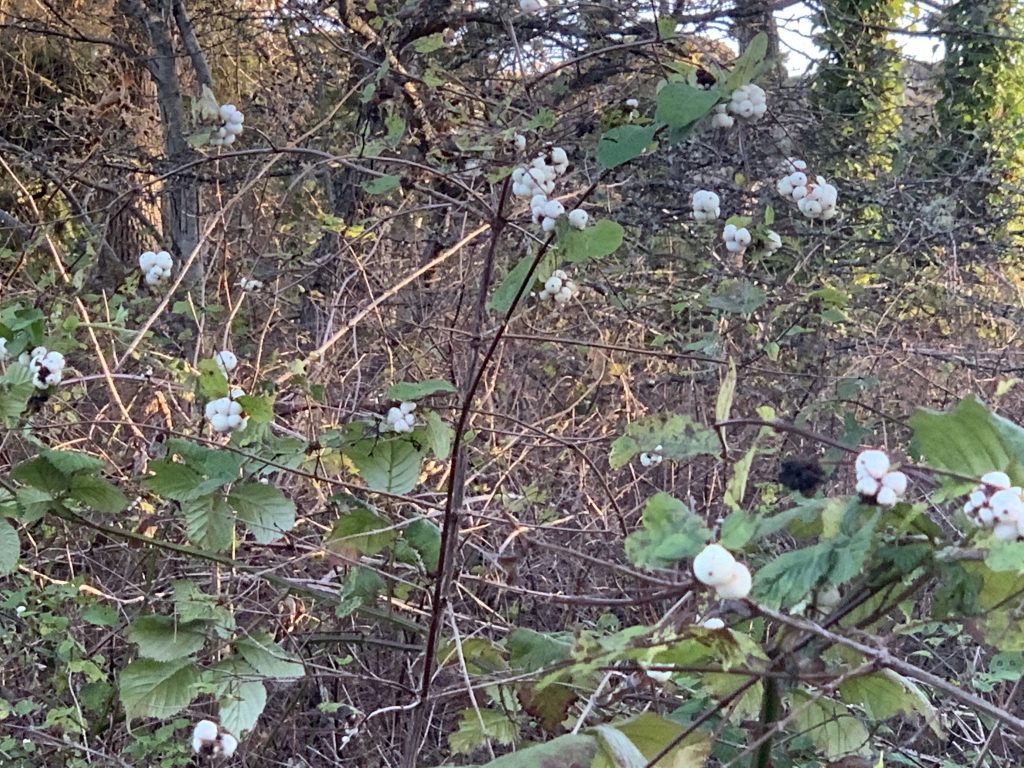I decided to take a route I like that goes through a golf course, to a thrift store, and then back home again. Near the beginning of it, I came across these snowberries. Elder Della Rice told us in a course that snowberries are used to wash your hands with before and after touching the dead and that they offer protection from ghosts. People on Folklore Thursday have shared posts about their association with the ghosts and the spirit realm in other parts of the world, as well. After I post this, I plan to go and pick two branches of red cedar tonight, as well. A few of them are in a park nearby.