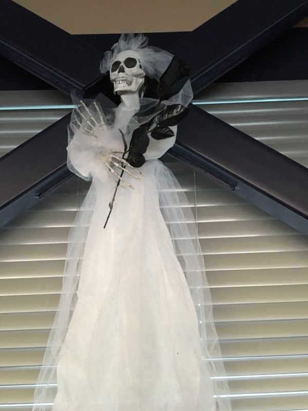 Here’s a close up of one of the ghosts. I found these at Walmart. I bought all of them in Nanaimo, Duncan, and Victoria’s Uptown so that I had thirteen. It felt like an auspicious number, collected from three stores across Vancouver Island also felt appropriate. There was one on each side of the entry hall, and the other eleven were sentinels around the room. This image was taken by Craig Spence of Mid-Island Focus (he interviewed me for a Haunting of Vancouver Island video).