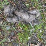 We find some scat in the area as well. Some of it looks several months old, while one sample looks less than a day old.