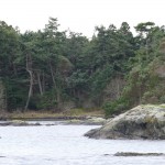 The sun rises, and the rain, which had arrived in the night, has stopped. The tide rips past us but the water is otherwise fairly calm. We drink our tea and start to sail along the shoreline, looking for signs of Staqeya. Our plan is to search by boat first, as she has most often been sighted from along the shore.